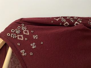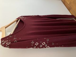 Elegante blusa de la marca IKKS de manga 3/4 color vino o burdeos con mangas de encaje semitransparente y cremallera de arriba a abajo en espalda. Género de alta calidad. Precio en tienda real sobre los 50 €. Talla S/M ó 36/38 Pone S pero podría venir bien también en 38 o M pequeña. Entrega en La Sagrera o alrededores. MÁS artículos de moda en mi perfil 🌺