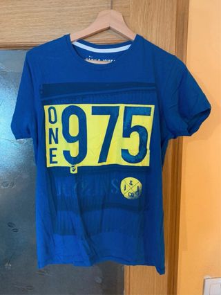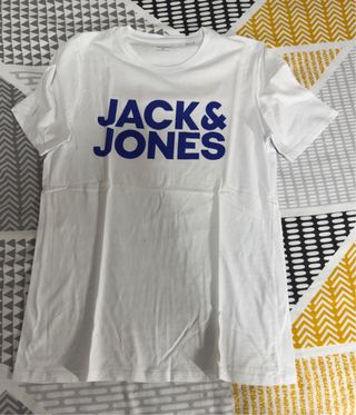 Camiseta de manga corta con el logo de Jack & Jones. - Logo grande en color azul. - Cuello redondo. - Talla M.