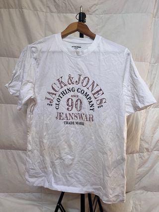 Camiseta de manga corta con el logo de Jack & Jones. - Cuello redondo. - Logo blanco estampado en el pecho. - Talla M.