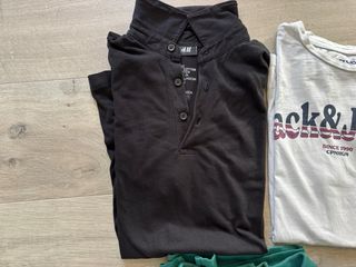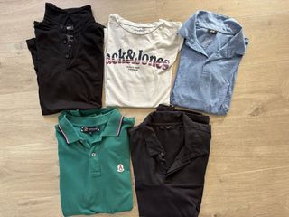 Pack de cinco camisetas variadas. - Polo negra H&M. - Camiseta blanca Jack & Jones. - Camiseta azul H&M. - Polo verde. - Polo negro Jack & Jones.