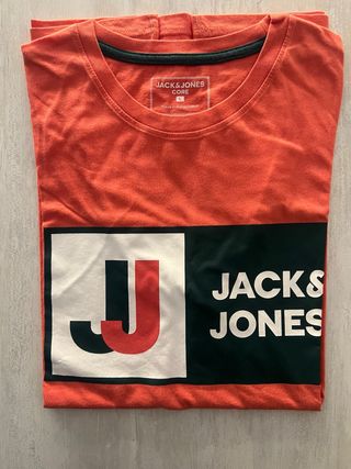 Vendo camiseta de manga corta de la marca Jack & Jones. Es de color rojo y tiene un diseño impecable.