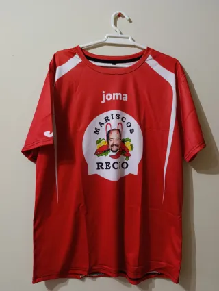 Camiseta de la marca Joma con diseño de Mariscos Recio. Talla L. Dorsales disponibles: 8,9. Se encuentra completamente nueva, no ha tenido ningún uso.