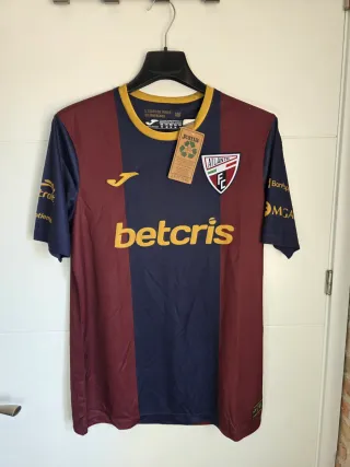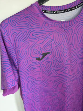Camiseta deportiva de la marca Joma, con un diseño moderno y llamativo. - Combinación de colores rojo y azul. - Apenas sin uso, en excelente estado.