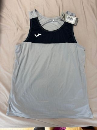 Camiseta deportiva de la marca Joma, ideal para entrenamientos. Totalmente nueva, indica XL Pero es mas talla M o L pequena. - Diseño sin mangas. - Combinación de colores gris y negro.