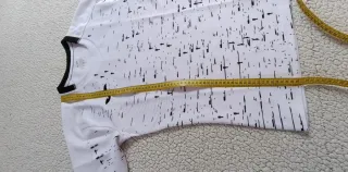 Camiseta deportiva Joma de manga corta con un diseño moderno. - Tejido ligero y transpirable. - Cuello redondo. - Mangas con detalle de ribete negro. - Estampado abstracto en negro sobre fondo blanco.