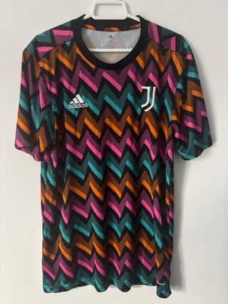 Camiseta de entrenamiento de la Juventus de la temporada 2021/2022. Presenta un diseño llamativo con un patrón de zig-zag multicolor. - Diseño de zig-zag en múltiples colores. - Logo de Adidas y escudo de la Juventus. - Tejido transpirable.