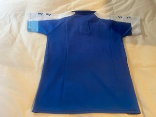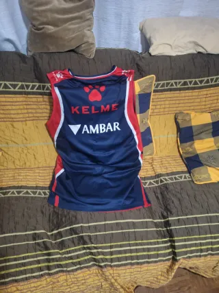 Camiseta de coleccionista de la marca Kelme. - Diseño con el logo Playas de Castellón en blanco. - Detalles de huellas de patitas y líneas verticales. - Cuello tipo polo con detalles en rojo y azul.