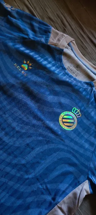 Camiseta oficial del RCDE Espanyol temporada 2020-2021 - Diseño moderno en tonos azules y turquesas. - Logo de Kelme en el pecho. - Logo de la liga en la manga. - Detalle conmemorativo del 120 aniversario en la parte inferior. Escucho ofertas