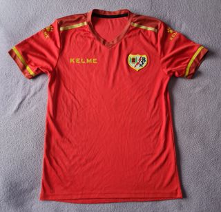 Camiseta oficial del Rayo Vallecano. - Diseño con franja diagonal negra y detalles blancos. - Logo de Kelme en el pecho. - Escudo del club en la parte frontal.