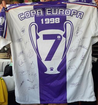 Camiseta firmada por todos los jugadores del Real Madrid dinal Copa de Europa del 98 talla Xl