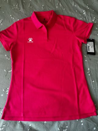 Preciosa camiseta polo de la marca Kelme, en color rosa y talla M. Es una prenda nueva, sin usar, con una apariencia impecable. - Diseño elegante y deportivo. - Tejido suave y cómodo. - Ideal para jugar al golf o para cualquier ocasión.