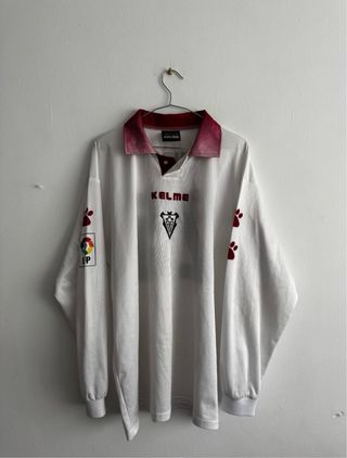 Preciosa camiseta del Albacete Balompié de la temporada 1998-1999, marca Kelme. Una pieza para coleccionistas. -Manga larga. -En buen estado. -Detalles en rojo y blanco.