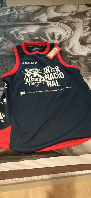 Preciosa camiseta de tirantes Kelme del Inter Bascon Nacional. Está en perfecto estado. - Es de color azul y rojo. - Talla: (Añadir talla) - Diseño deportivo.