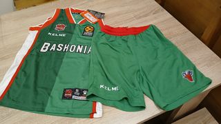 Conjunto de equipación de baloncesto del Baskonia, prácticamente nuevo. Incluye camiseta y pantalón corto. - Talla: consultar medidas en las fotos. - Perfecto para entrenar o jugar partidos.