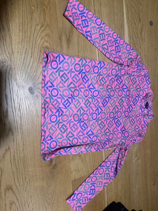 Camisa de manga larga con un estampado llamativo.talla 10/14 años Ideal para sky - Diseño con logo Kenzo y Paris repetido. - Combinación de colores rosa, azul y verde.