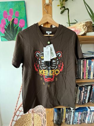 Oferta 70% de descuento! Camiseta de la marca Kenzo con un diseño llamativo de tigre. - Color marrón. - Estampado frontal de tigre con detalles en rojo, blanco y amarillo. - Logo de Kenzo Paris en el pecho. Nueva, sin estrenar con etiqueta PVP: 90€ Más cosas bonitas y nuevas en mi perfil, recoger en CORNELLÁ o se hace envío y lotes .