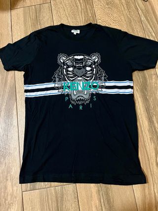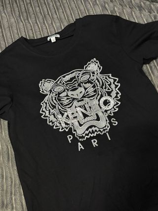 Camiseta Kenzo de color negro con el icónico estampado del tigre. Con muy poco uso. Escucho ofertas. - Diseño frontal con el logo de Kenzo y el tigre. - Cuello redondo y manga corta.