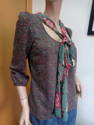 Blusa Kenzo gris topos con lazo floral