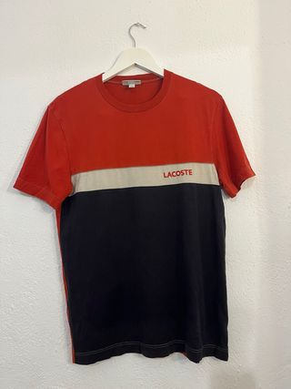 Camiseta de estilo vintage con un diseño de bloques de color. - Diseño de tres colores: rojo, beige y negro. - Logo de Lacoste bordado en el pecho.