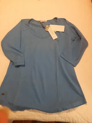Camiseta original Lacoste de manga corta, confeccionada en 100% algodón Pima, muy suave, ligero y de alta calidad. Color azul oscuro, elegante y fácil de combinar (tono cercano al negro). Corte regular fit, cómoda y versátil. Puede usarse tanto por hombre como por mujer según preferencia de ajuste. Logo clásico de Lacoste bordado en el pecho. La prenda está en muy buen estado, sin rotos ni manchas, bien cuidada. Talla indicada: FR 5 / US L Equivale aproximadamente a talla L, válida como unisex. Ideal para primavera y verano. Envío por Wallapop o entrega en mano.