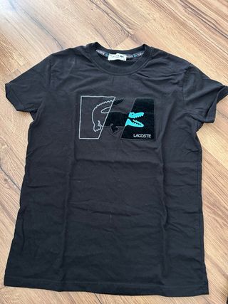 Preciosa camiseta de la marca Lacoste. Es de color negro y tiene un diseño elegante. - Se entrega tal cual se ve en las fotos.