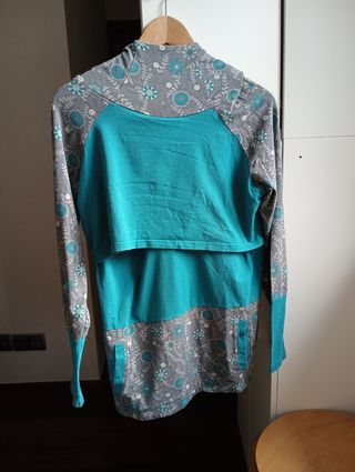 Mamisetta Camiseta lactancia. Válida tanto para los seis o siete primeros meses de embarazo como para la lactancia, la manga larga evasé le confiere un toque moderno Talla M. A estrenar, no se ha llegado a usar, sin etiquetas.