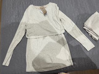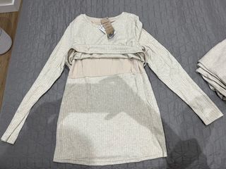 Conjunto de dos piezas para lactancia, compuesto por camiseta y falda. - Camiseta de manga larga. - Falda con detalle de tejido. - Diseño acanalado. Nuevo con eriquetas.