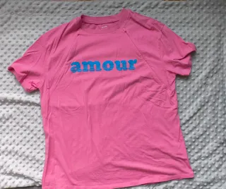 Camiseta muy práctica para dar el pecho de forma discreta. Está como nueva. De la marca belga Seraphine, que creo que ahora ha cambiado de nombre. El color se parece más al de las últimas fotos. Las marcas que tiene son de la plancha pero está en perfecto estado