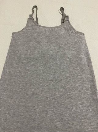 Camiseta interior de lactancia con tirantes finos. Su diseño de doble capa la hace muy práctica. - Tejido suave y elástico. - Diseño de dos capas superpuestas. En perfecto estado. 2,5€ No envíos!! Entrega en Barcelona zona clot glòries poblenou.