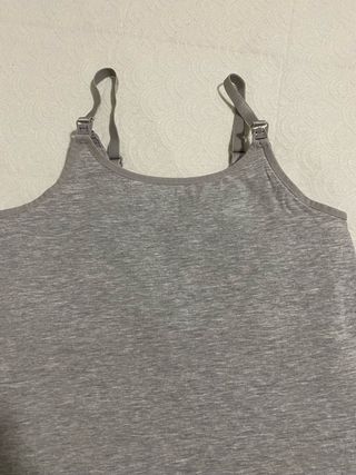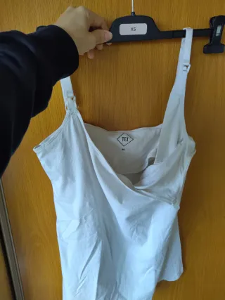 Camiseta de tirantes diseñada para la lactancia. - Tirantes ajustables con clips para facilitar la lactancia. - De algodón Bio, sostenible. - Talla M amplia - También vale para después de la lactancia, muy versátil. - Poco uso, muy bien conservada.