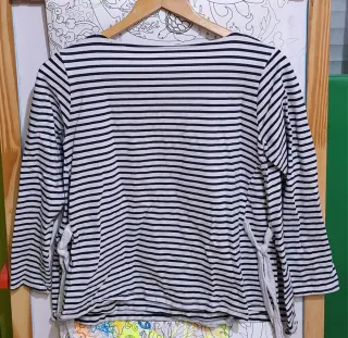 Camiseta de rayas, ideal para premamá y lactancia. - Diseño cruzado. - Mangas cortas. - Lazos laterales para ajuste.