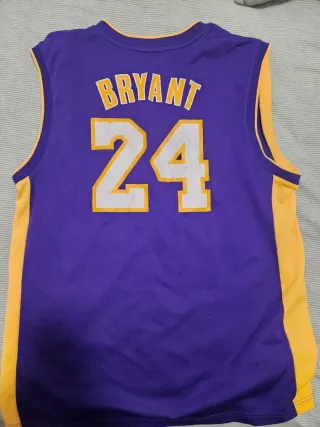 Camiseta de baloncesto de los Lakers, talla chico. - Diseño icónico con el número 24. - Logo de Adidas y NBA. - Colores amarillo y azul.