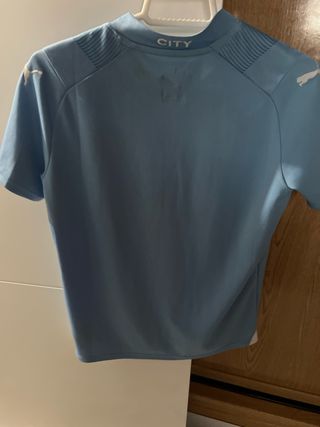 Camiseta de fútbol del Manchester City. - Diseño con detalles blancos y celestes. - Escudo del club bordado. - Logo de Puma.