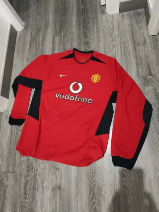 Camiseta de fútbol del Manchester United de la temporada 2002/2004. Talla L, en versión manga larga - Logo de Nike bordado. - Escudo del Manchester United bordado. - Patrocinador Vodafone en la parte frontal en perfecto estado - Nunca se ha usado