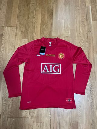 Camiseta de manga larga del Manchester United, edición especial de la final de Moscú 2008. - Color rojo vibrante. - Logo del club y patrocinador AIG. - Tecnología Nike FIT.