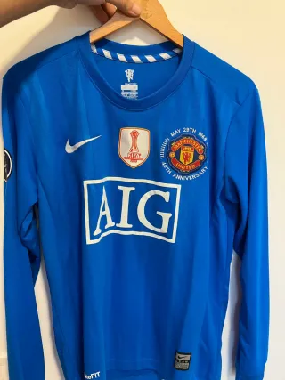 Camiseta de fútbol del Manchester United de la temporada 2008/2009, en su versión alterna. - Diseño de manga larga. - Escudo del club y detalles conmemorativos. - Logo de Nike bordado. - Talla M