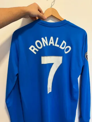 Camiseta azul de manga larga del Manchester United 2007 - 2008 - no negociable - hago envios - Número 7 y nombre 'Ronaldo' en la espalda. - Logo de la Champions League en la manga. - Detalle 'MUFC' en la parte inferior.