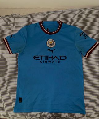 Vendo la primera equipación del Manchester City de la temporada pasada (24/25). Está completamente nueva, a estrenar. Nunca ha sido usada; de hecho, conserva todas las etiquetas originales de Puma puestas, como podéis ver en las fotos. Es una talla XL. Es el modelo "Replica" oficial (versión fan). Producto oficial!