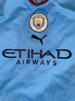 Camiseta oficial del Manchester City. - Diseño moderno en azul y blanco.. - Logo de Puma y escudo del club. - Patrocinador Etihad Airways. 📦 Envío disponible a toda España. 📍 También posibilidad de entrega en mano en Madrid Centro. 💰 Precio fijo, ahorrémonos el tiempo. Gracias por entender..