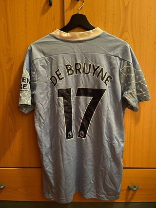Camiseta de fútbol del Manchester City de la temporada 2020-2021. De bruyne con el 17 No es verdadera Preguntad si teneis dudas