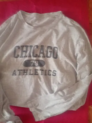 Camiseta gris con estampado Chicago Athletics y el número 79 -tejido algodon - Diseño deportivo. - Manga larga.