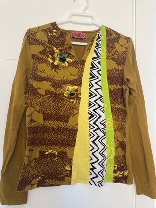 Camiseta manga larga talla 13/14 años. Sirve para talla XS. En perfecto estado. De algodon. Estampado floral en tonos azules y amarillos