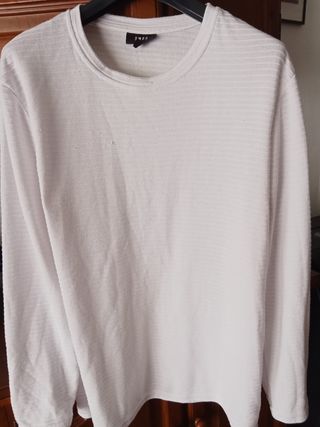 Camiseta blanca de manga larga 100% algodón.. Con puntos grises en torso, y mangas blancas. En perfecto estado.