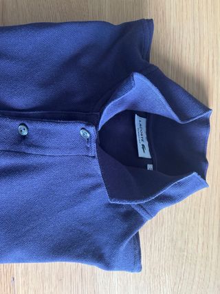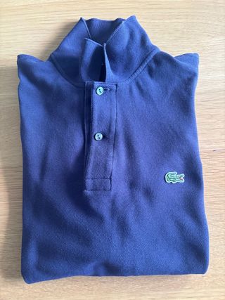 Polo de la marca Lacoste en color azul marino (Manga Larga). Un clásico para cualquier guardarropa. - Logo del cocodrilo bordado en el pecho. - Cuello tipo polo con botones. - Tejido de algodón transpirable. Perfecto estado. Muy poco uso. Obviamente original.
