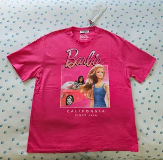 Camiseta de manga corta con estampado de Barbie en parte delantera, de Stradivarius. 100% algodón. Talla M. A estrenar. Medida hombros 50 cm. Largo 68 cm.