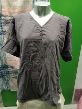 Camiseta de manga corta con cuello en V y detalle de botones. - Tejido suave y ligero. - Corte holgado. 100% Algodón Ancho 51 Largo 72 Axila 60
