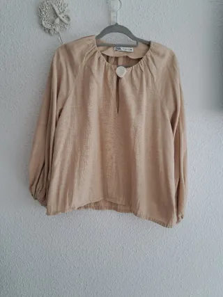 Blusa de Zara con un diseño elegante y cómodo. - Manga larga abullonada. - Detalle de botón en el escote. - Tejido de algodón con textura.