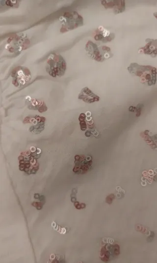 Camiseta manga corta farol con lentejuelas plateadas 100% algodón. Largo 57, pecho de 44 a 60.