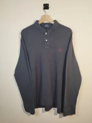 Polo de manga larga de Polo Ralph Lauren en color gris. Presenta un diseño clásico con cuello y botones. - Logo de la marca bordado en el pecho. - Puños ajustados. - Tejido de algodón suave. Talla XXL 72 cm largo 63 cm axila a axila 62 cm de ancho de hombros En perfecto estado