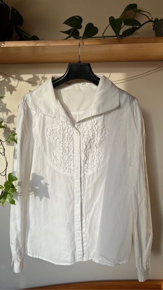 Blusa blanca de manga larga con detalle en el pecho con botones. 100% tela de algodón Talla 40 / talla M En perfecto estado, sin apenas uso
